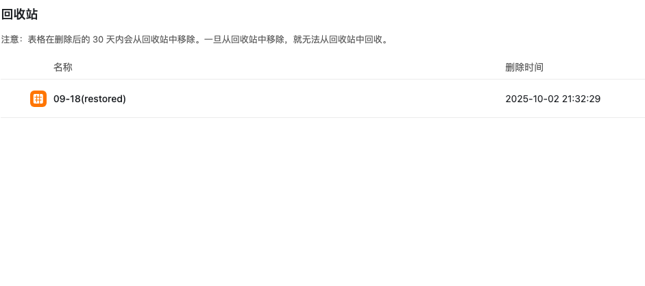 是的,个人的表格和团队的表格,在不同的回收站中。团队管理员可以点击查看团队回收站。