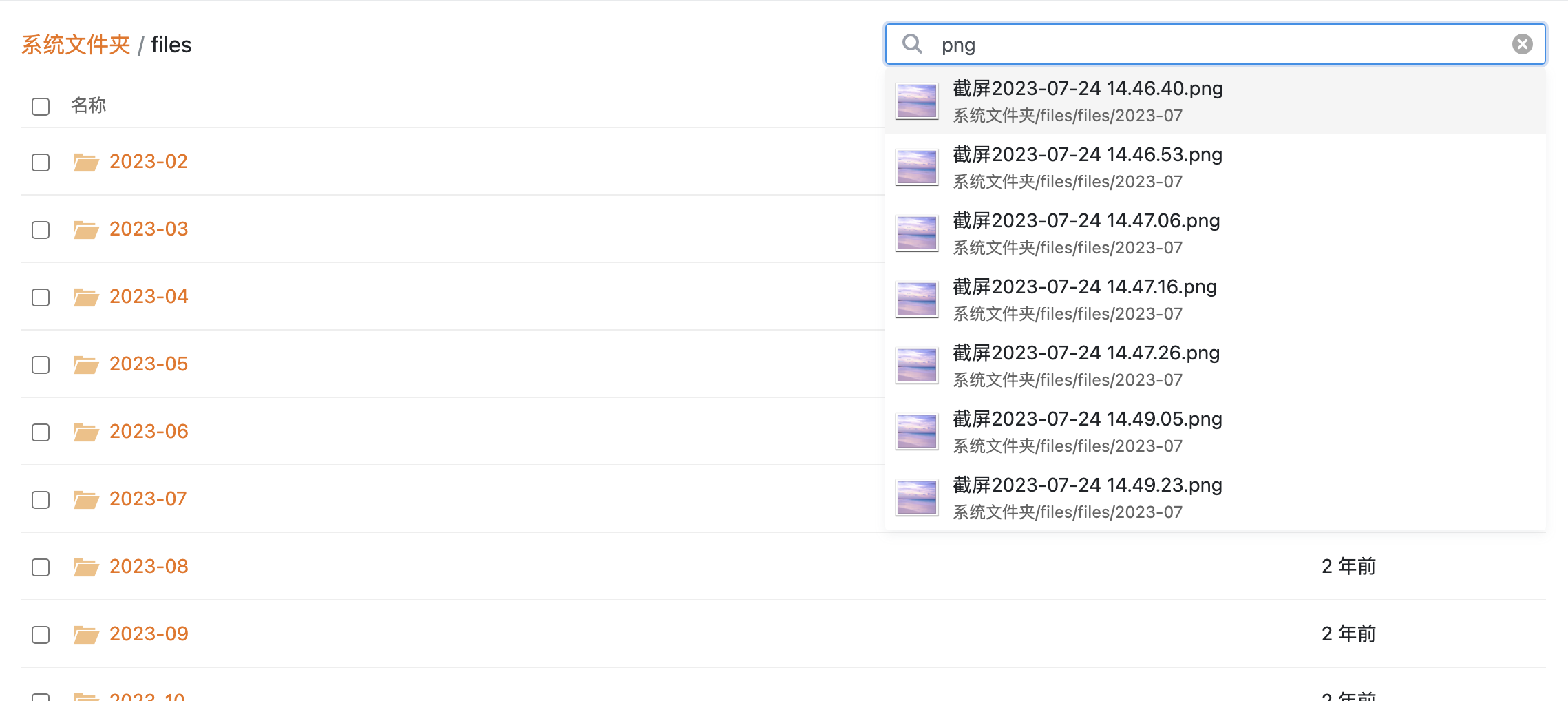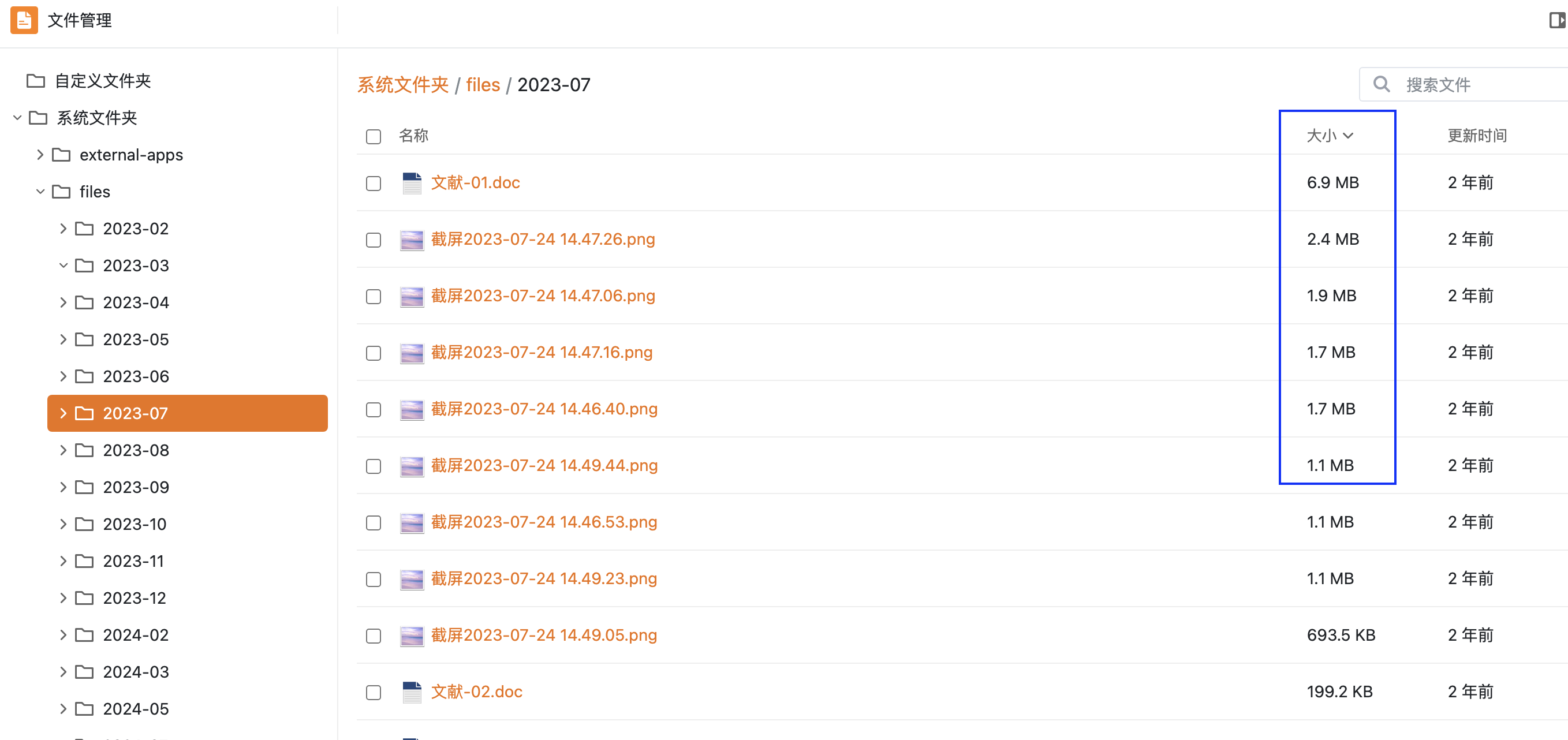 您只能按照 默认的 时间文件夹去删除文件,要不然就是进入文件夹内,按照时间排序去删除附件