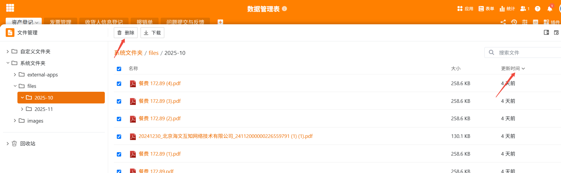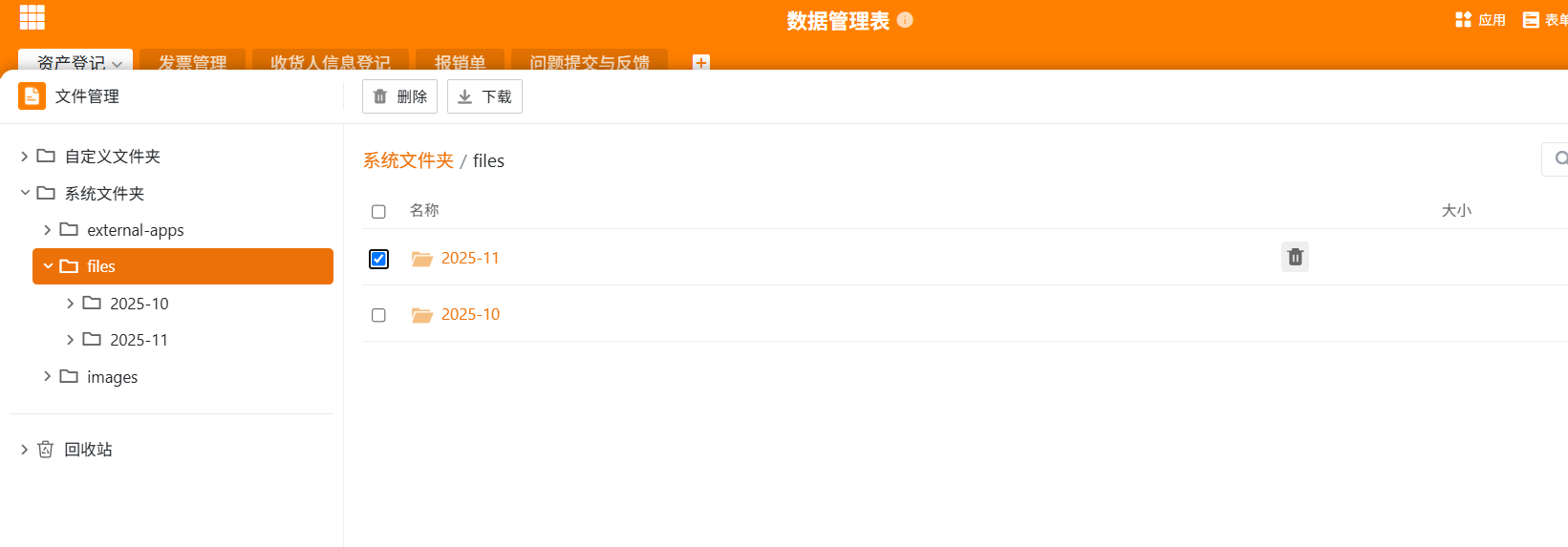 这个没有好的清理办法,一个大表一个文件管理站,各个表格创建者,直接去文件管理内删除文件,并清空文件管理的回收站