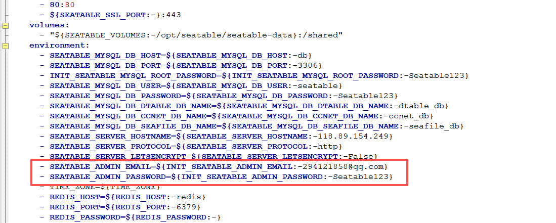 1、您先确认一下env 中是否有用户配置,默认是有配置的,假如env中有配置选项,在docker-compose.yml 配置的默认选项不生效。 建议在env中配置,直接在docker-compose.yml 不规范。 2、假如env已经删除用户配置选项,需要看一下seafile容器日志,看看有什么报错信息