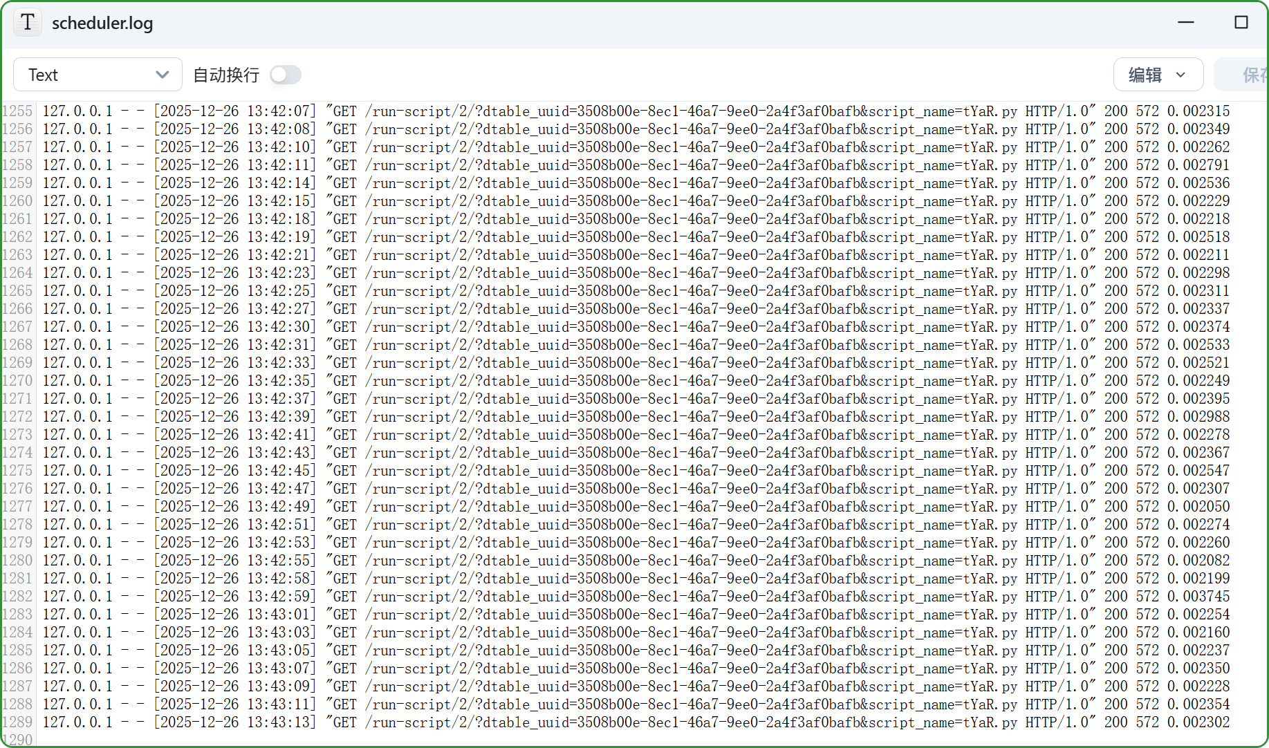 新建脚本,脚本类型为python,内容为print("Hello World!"),点击运行后python-starter新建了一个python-runner容器,各个python容器的日志和文件看起来都正常,但是脚本却是一直在运行中,没有停止,也没有结果,此时若要停止该compose stack,必须手动停止新建的python-runner容器。compose文件附在文末,现象截图如下: