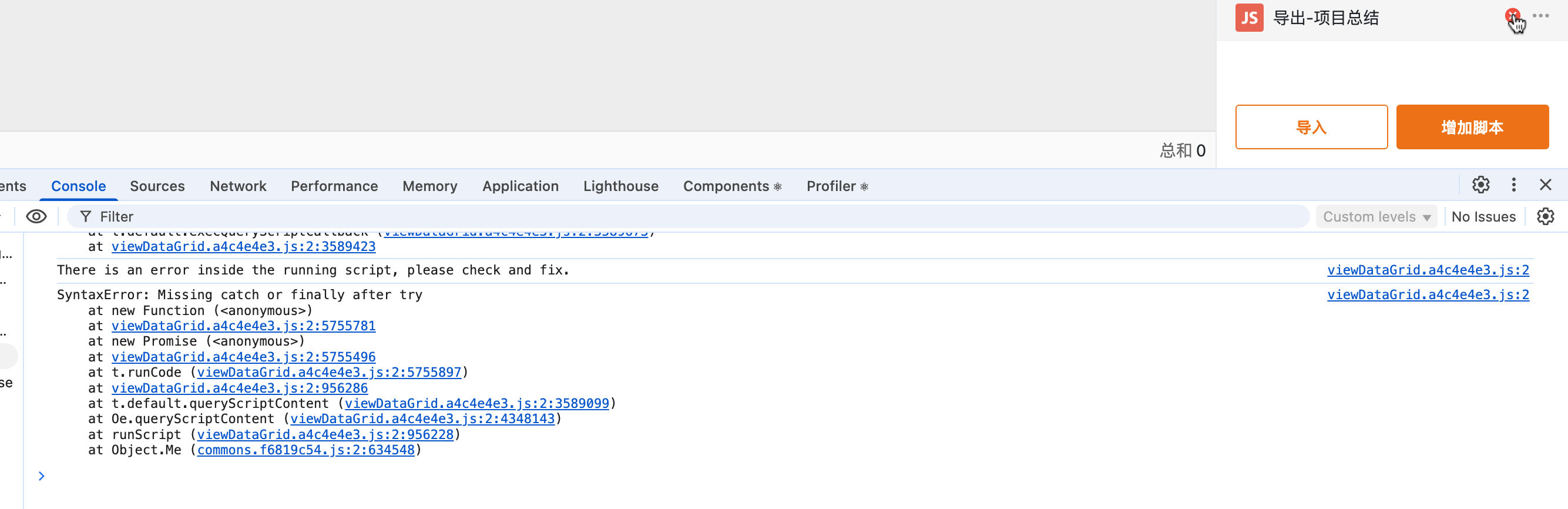 目前只有在侧边栏运行脚本,可见控制台。但是通过按钮运行脚本时,控制台不可见,导致脚本的运行结果不直接可见,只能通过其他方法把想要提取的信息输出出来。如此一来,调试脚本变得不便,请问可以加一个脚本控制台历史输出之类的功能,使得按钮运行脚本的输出可见吗?
