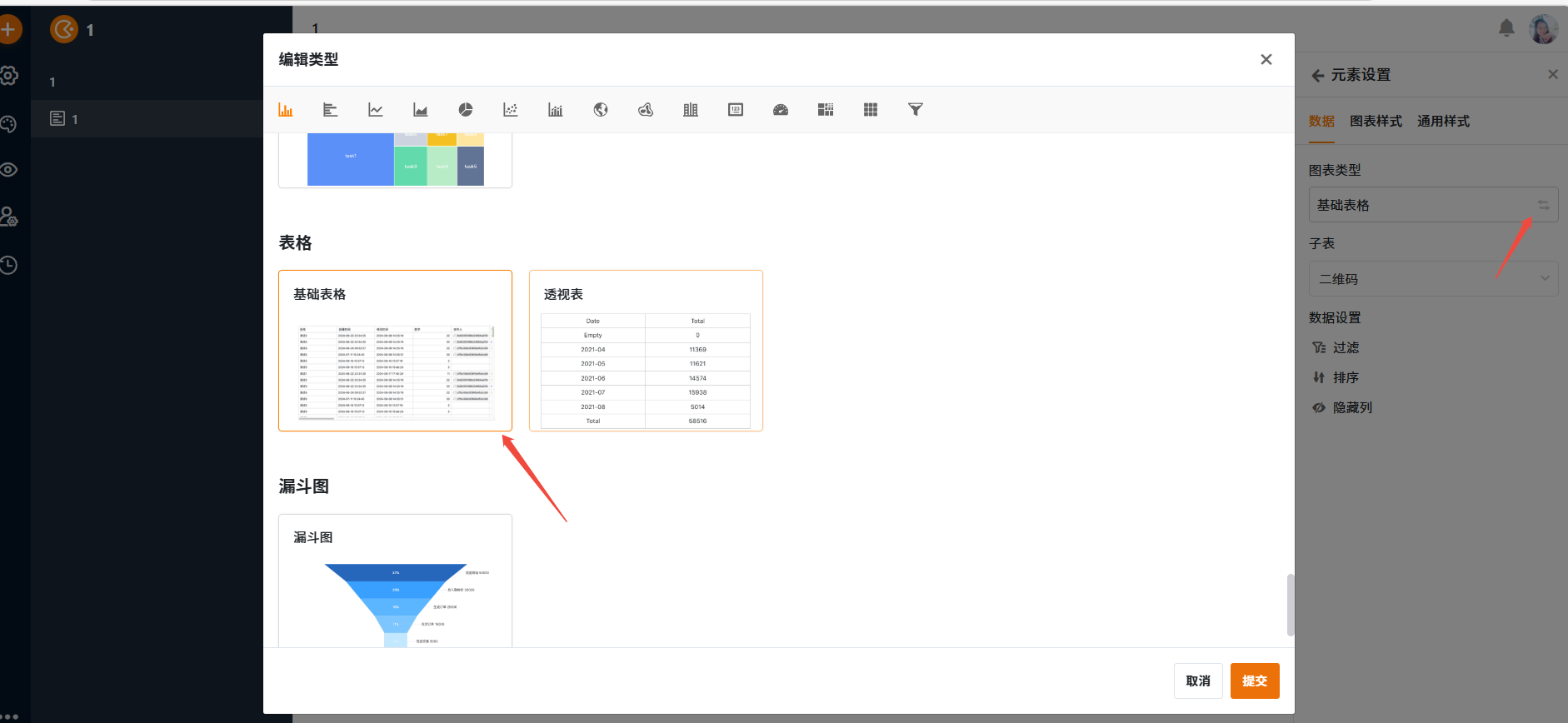 2.统计-新增图表中没有5.2版公告中新增的“基础表格”图表类型